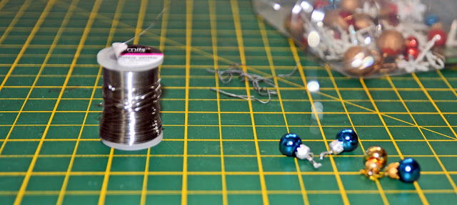 This tree I went for less is more. The decorations are Dollhouse and the lights are seed lights on silver. These little balls have such a tiny string on them they would never hang on the tree. So I used some jewelry wire (silver to match the tree) This one is very thin and can be cut with scissors but if the wire is thicker you will need wire cutters.